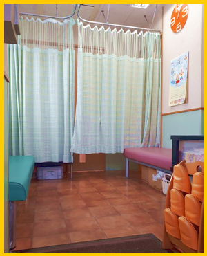 2)夜尿外来:5歳までは「おねしょ」、6歳を過ぎると「夜尿症」と考えられ、適切な治療で改善することができます。検査をして診断がついたら、治療と共に夜尿日記をつけながら、ご本人といっしょになって治癒に向かってご指導致します。